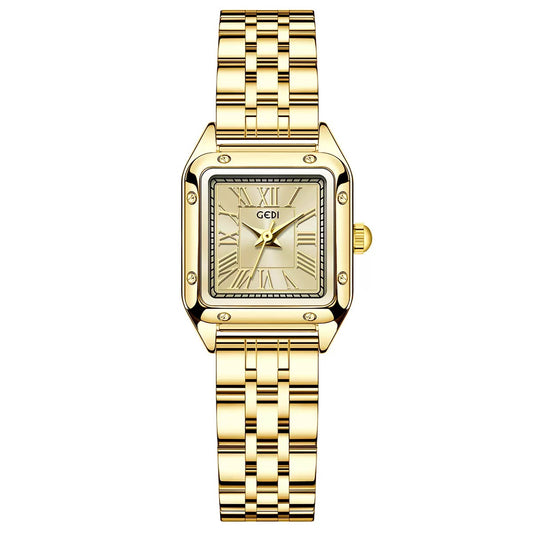 Classic Square Unisex Watch – Titanium Steel Gold Plated | Waterproof 3ATM | Fade-Resistant | Elegant Vintage Style