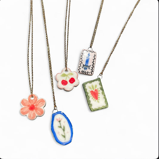 Handmade Ceramic Pendant Necklace with Gold Chain