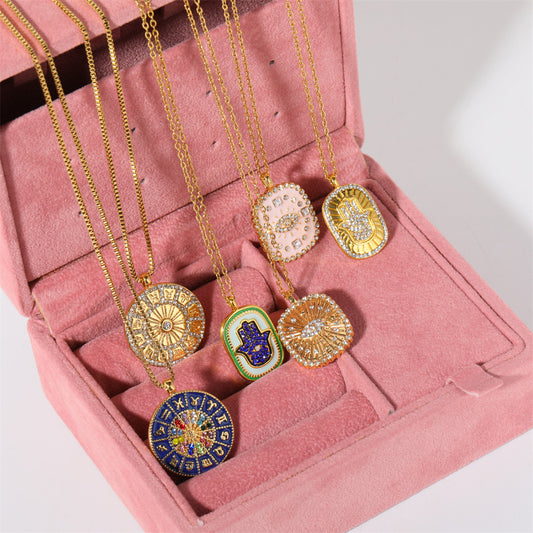 Tarot Card Necklace Cubic Zirconia Inlay