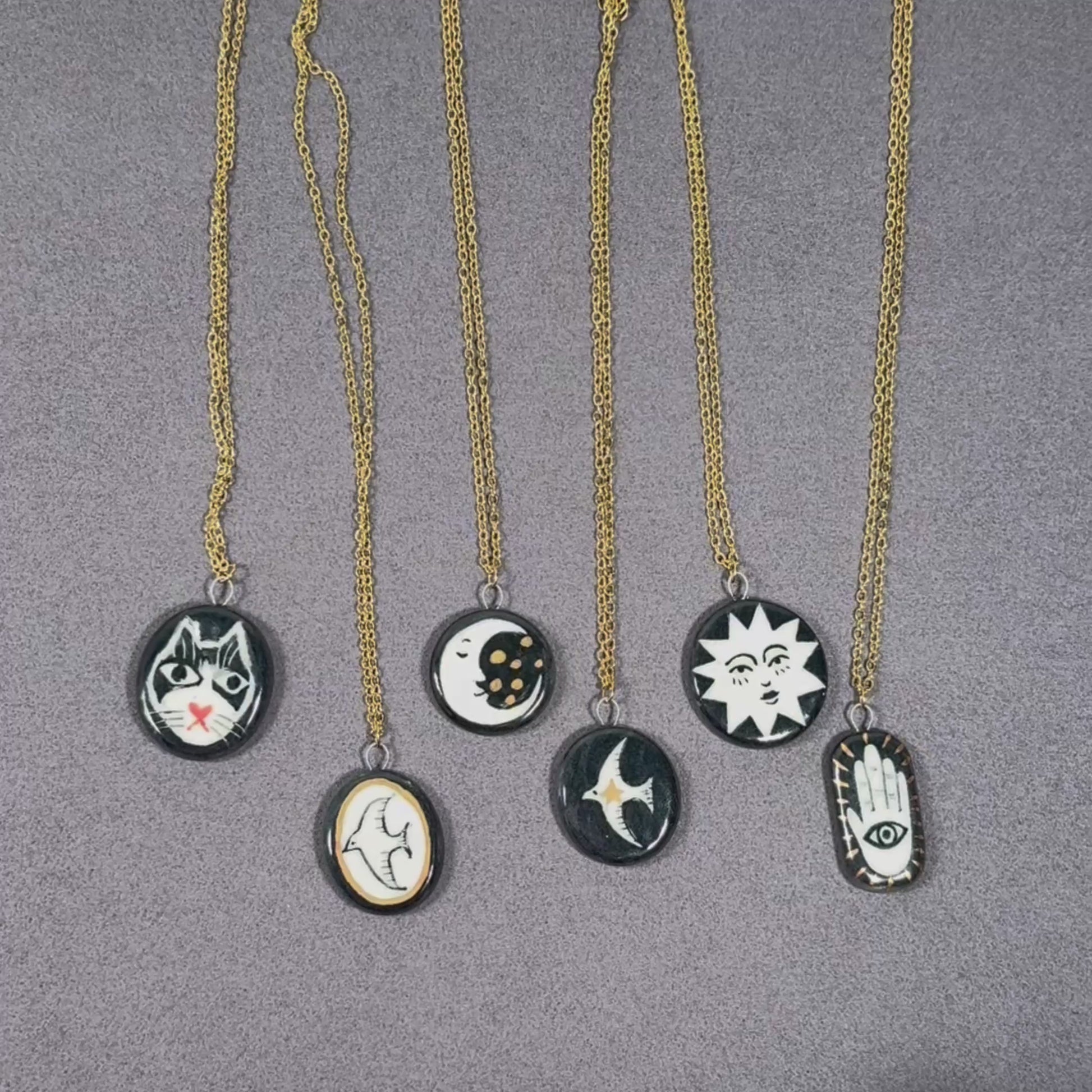 Handmade Ceramic Pendant Necklace with Gold Chain