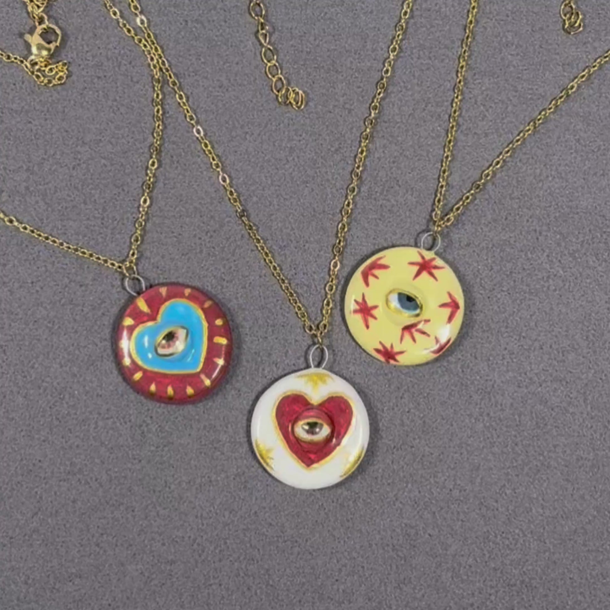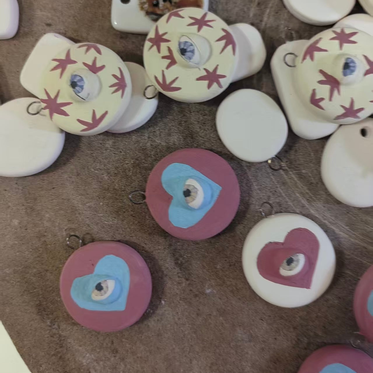 Handmade ceramic necklace, Evil Eye ceramic pendant series, natural boho style, rustic nature-inspired design.