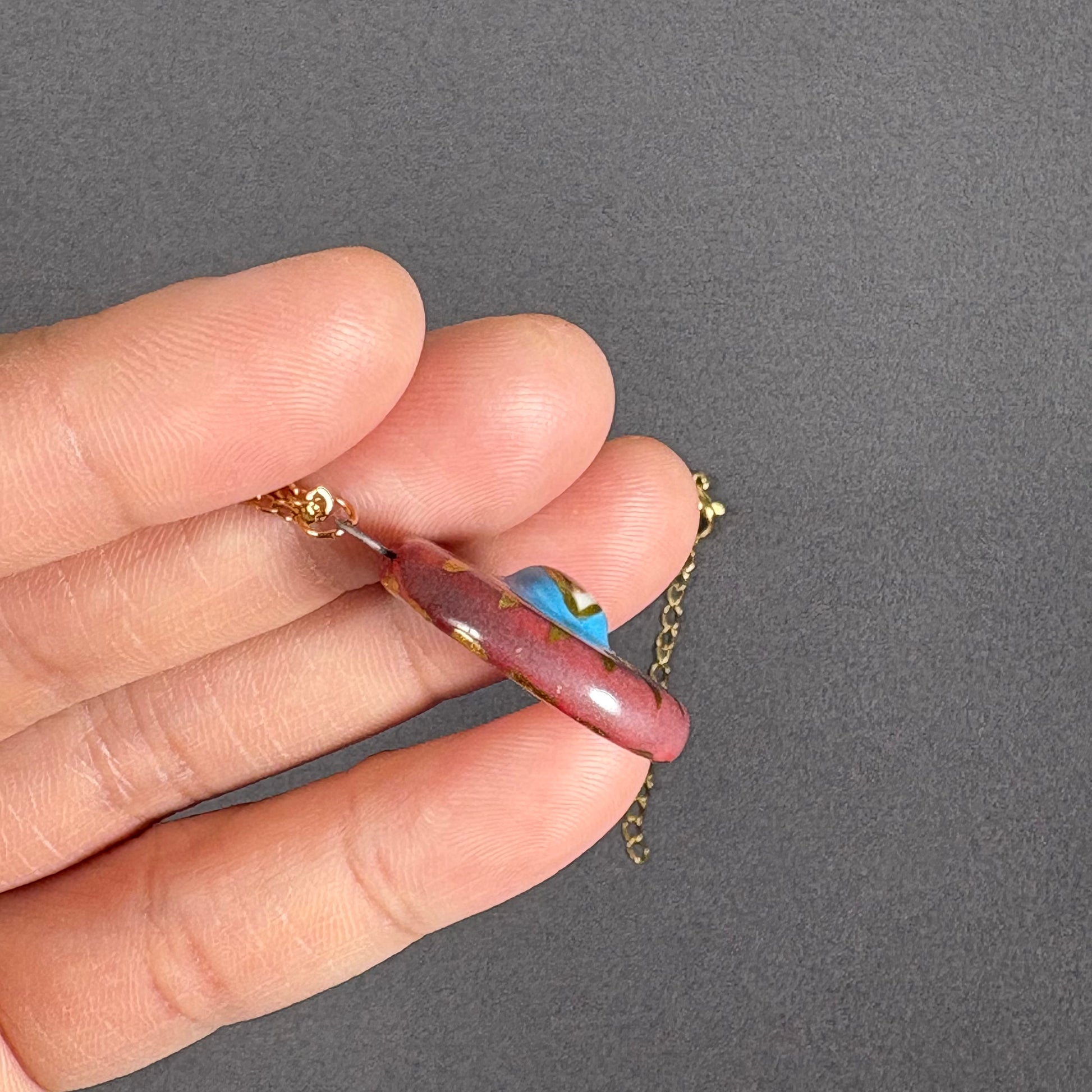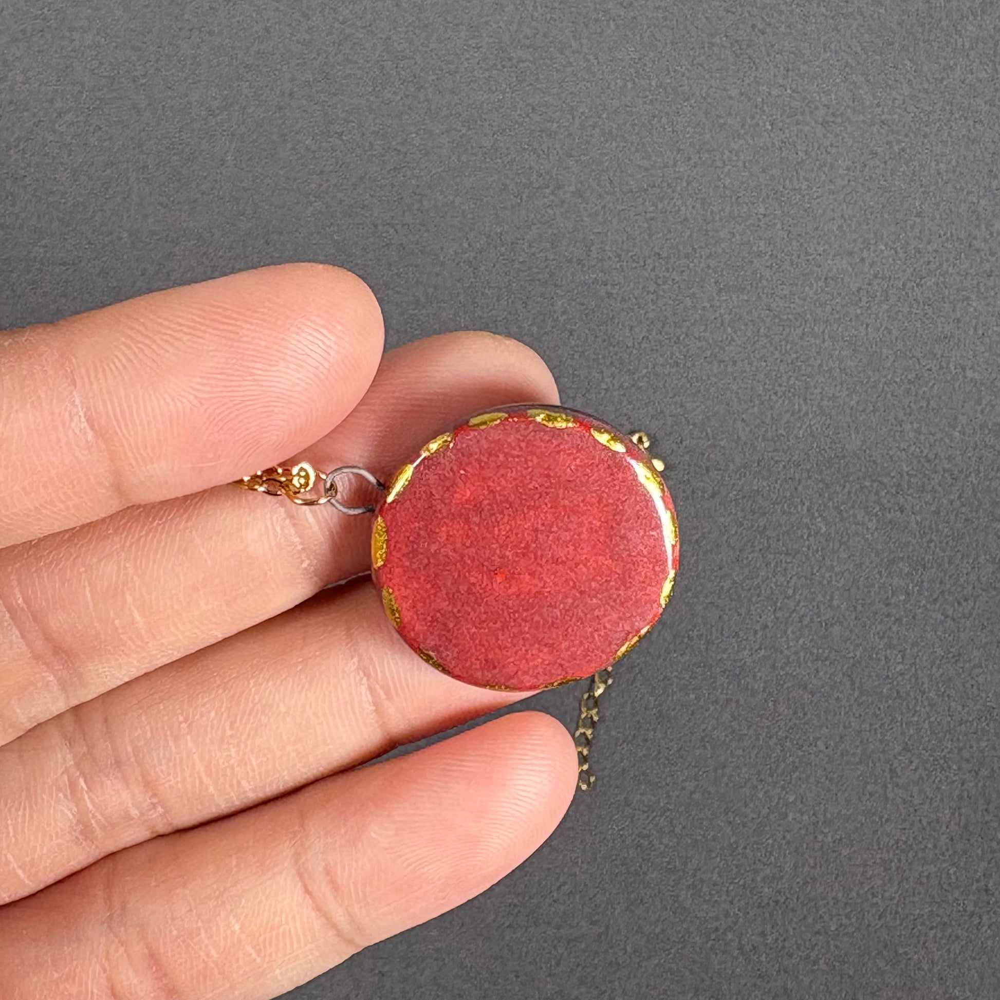 Handmade Ceramic Pendant Necklace with Gold Chain